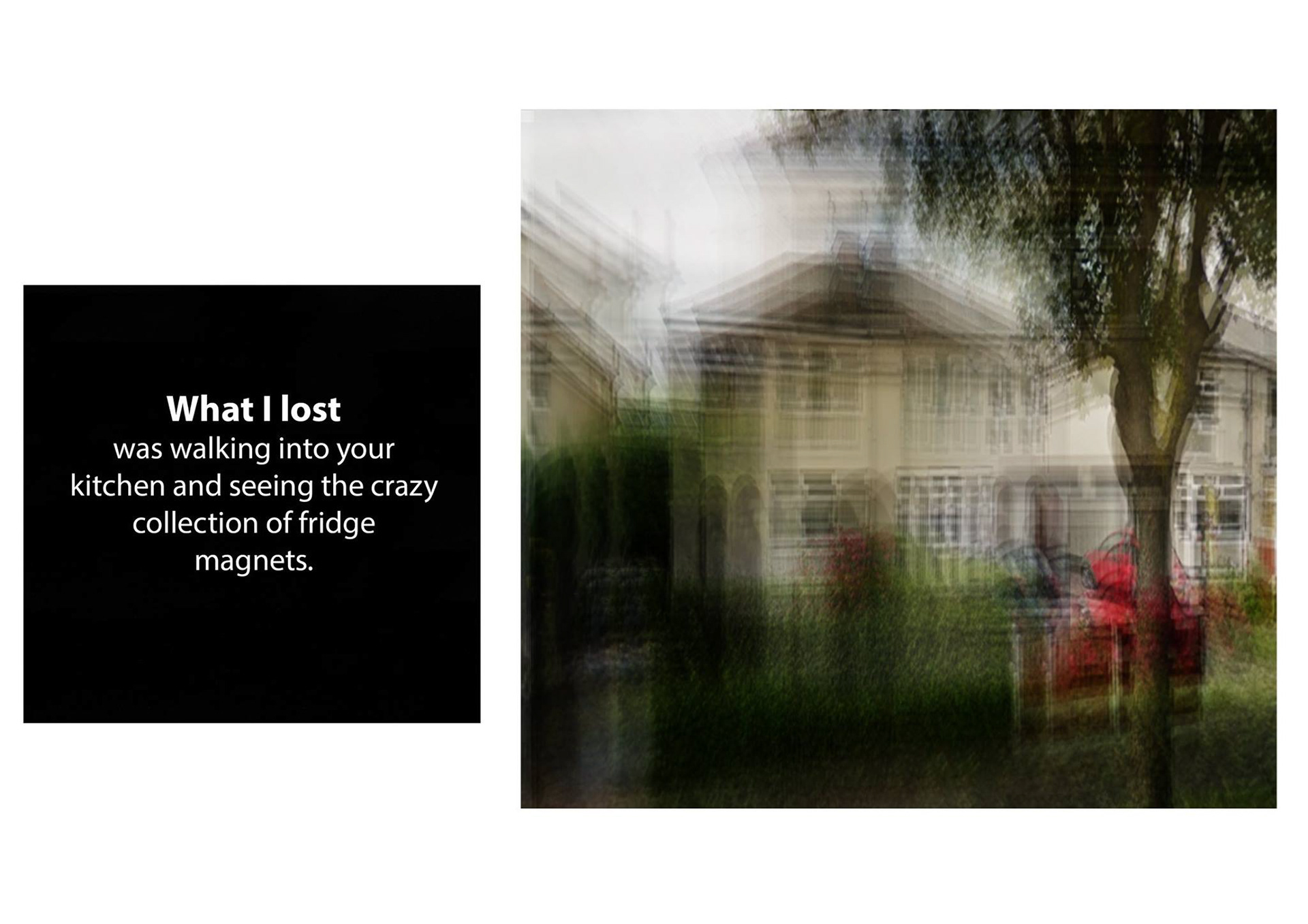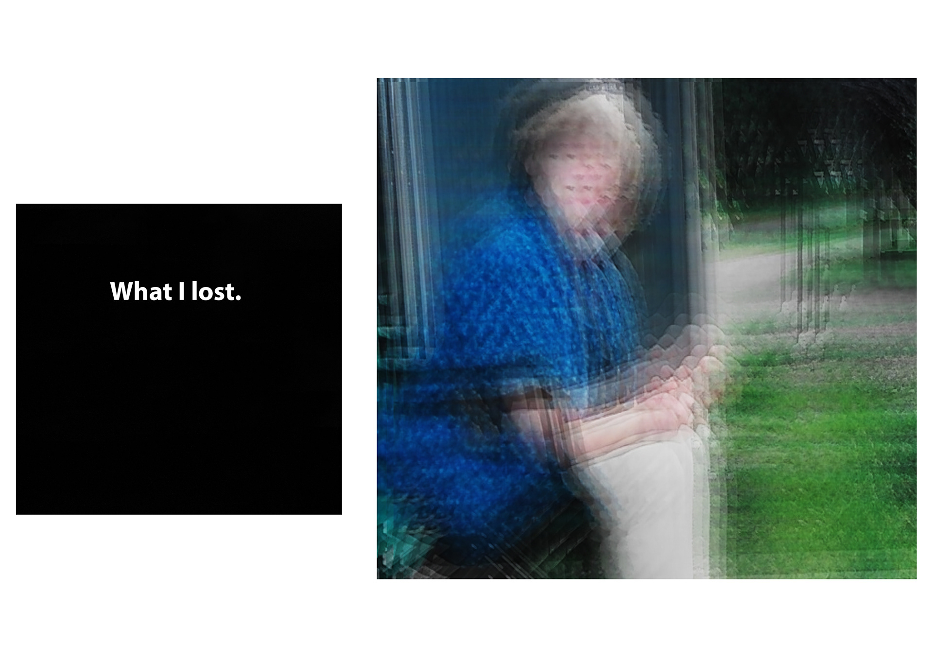 This project explores both loss and memory and revolves around my relationship with my Grandmother. At the time of this project, it had been eight years since my Grandmother passed away, and as each year passes I continue to feel nostalgic about her and moments that revolved around her. What I have found over the years, is that these memories become distorted; the emotion I experience stays the same but the visual memory changes.